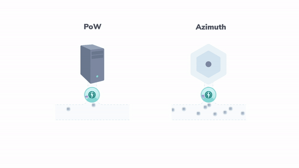 Con Azimuth, podemos sustituir la potencia computacional por la dirección (existe un número limitado de direcciones, por lo que vinculamos cada transacción con una dirección).